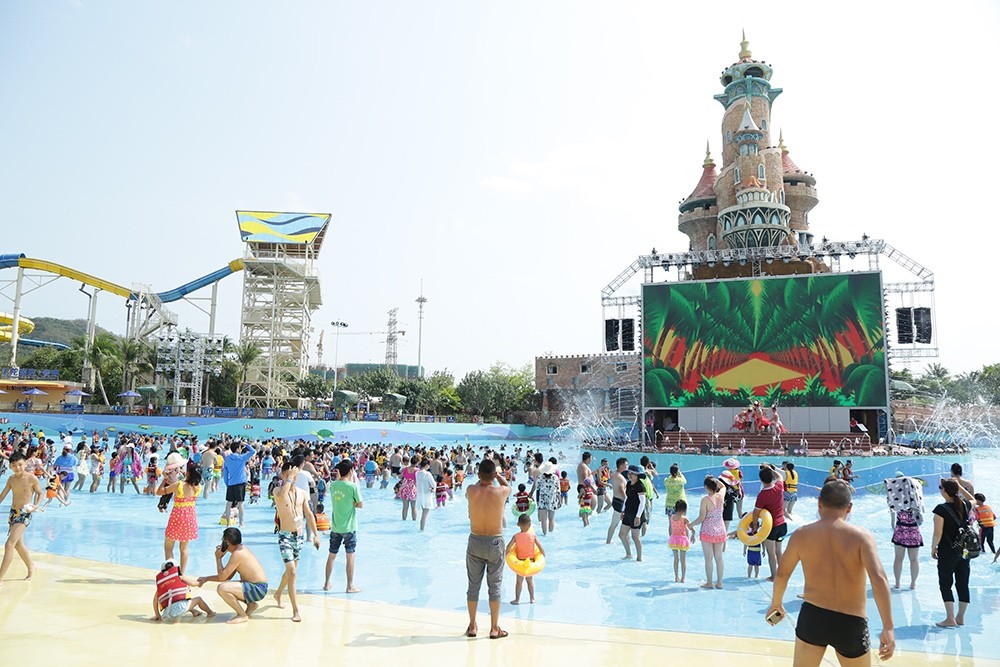 樂園目前配備12套大型游樂設施,近百條戲水滑道。其中包括垂直距離高達28米、下滑角度70°的國內頂尖心跳滑道——尖峰時速;長達1350米、詮釋雨林故事的休閑漂流項目——雨林漂流;面積16000平方米、海嘯浪可高達3米的造浪池項目——颶風海嘯及歡樂海岸;被稱之為“亞洲奇跡“的長280米的超長水上過山車——水上飛龍。