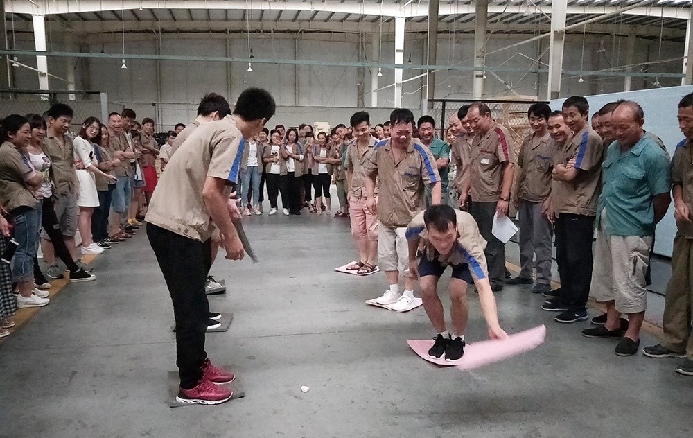 隨著一聲“比賽開始”的口令,大家熱情高漲,隊員們齊心協(xié)力,奮力拼搏,有些隊剛開始有點緊張,所走路線成彎曲狀,后來,在大家從旁提醒,順利到達終點。有些隊吸取經(jīng)驗,通過簡單的交流和溝通戰(zhàn)略技巧,比較順利。相比而言,后面的組明顯比前面的組速度快。在整個比賽過程中,里料車間團隊協(xié)作的能力和靈活的戰(zhàn)術配合比較好,本著“友誼第一、比賽第二”的精神,經(jīng)過激烈角逐,里料車間以2分25秒完成了60米“搭橋過河”獲比賽第一名,包裝車間獲得第二名,技術部獲得第三名。