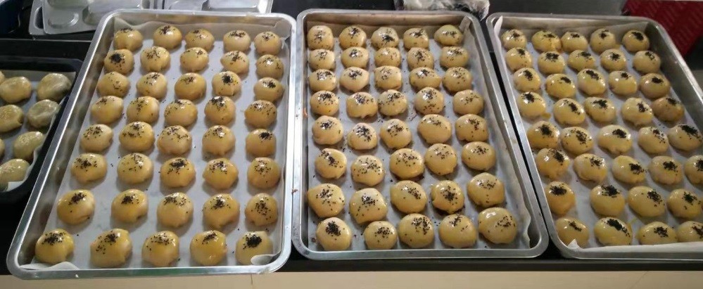 在群團(tuán)組織的帶領(lǐng)下,大伙兒一起親身體驗(yàn)做月餅的樂趣,現(xiàn)場熱鬧非凡,氣氛活躍喜慶。公司不乏做月餅高手,在她們點(diǎn)撥下,大家信手拈來,人人化身月餅師傅,揉粉、搟皮、做餡、包裹、上色、烘焙……一個個精美的月餅在手中呈現(xiàn),空氣中洋溢著滿滿的成就感。