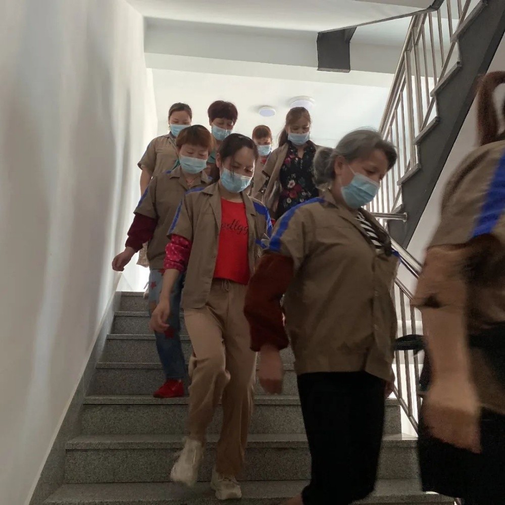 經(jīng)過周密安排,上午9時,一陣急促的火警警報聲拉開了“消防疏散演練”活動的帷幕,聽到警報聲,各車間主任立即到達指定崗位,指導員工快速疏散,員工們彎著腰、貓著步,捂住口鼻,沿著指定安全出口快速前進,有序安全撤離到廠區(qū)內(nèi)的緊急集合點。