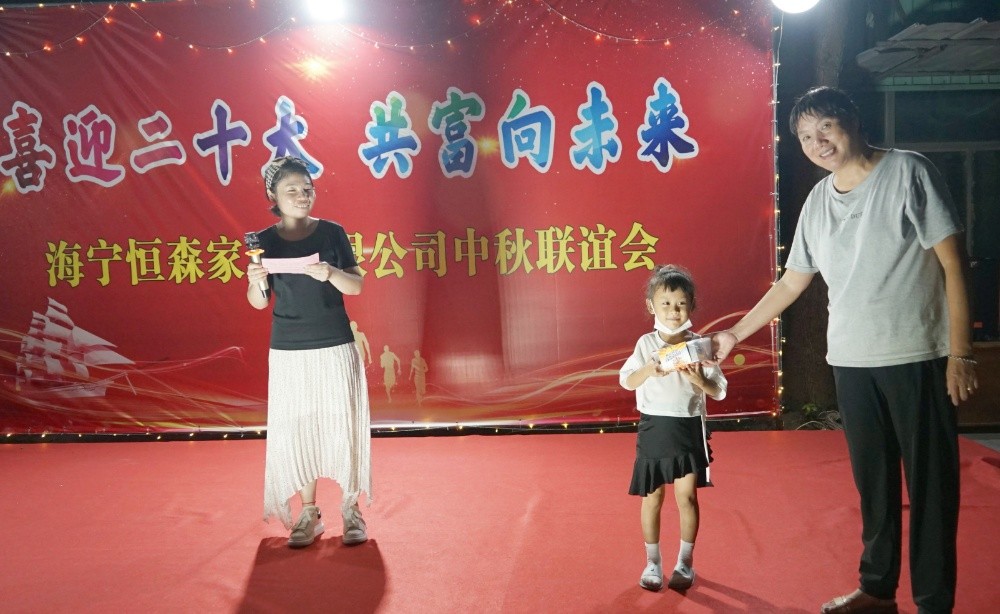 9月7日晚,一場(chǎng)別開生面的“喜迎二十大·共富向未來——海寧恒森家具有限公司中秋聯(lián)誼會(huì)”在路仲?gòu)S區(qū)的場(chǎng)地上完美呈現(xiàn)。沒有璀璨的燈光,沒有高檔的音響,亦沒有華麗的服裝和專業(yè)的演出技能,公司近200名員工簡(jiǎn)樸地歡聚在一起,用歌舞表演等形式迎接壬寅中秋和二十大的到來;用圓桌圓盤等寓意中秋團(tuán)圓,十全十美。
