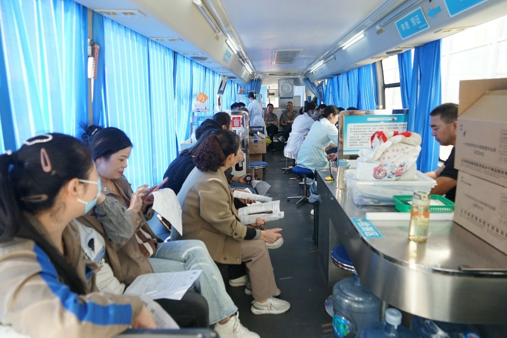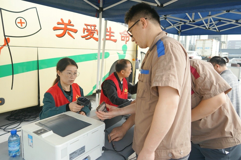 當(dāng)天上午,整個(gè)廠區(qū)洋溢著愛的暖流。只見大家在采血車前有序填寫獻(xiàn)血登記表、測(cè)量血壓、征詢體檢、初篩采樣。隨后合格者上車獻(xiàn)血,奉獻(xiàn)愛心。