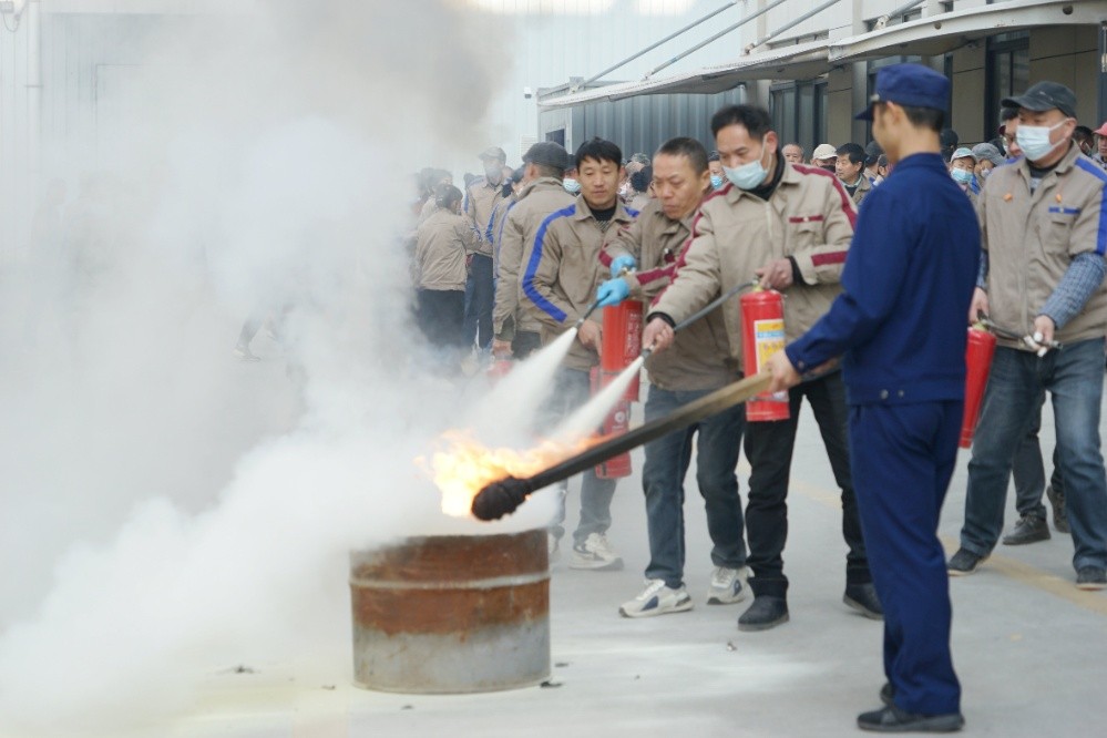 員工代表進行滅員工代表進行滅火器使用實操,尤其是對新近入職員工,要求每人必須當場操作,確保人人會用滅火器。
