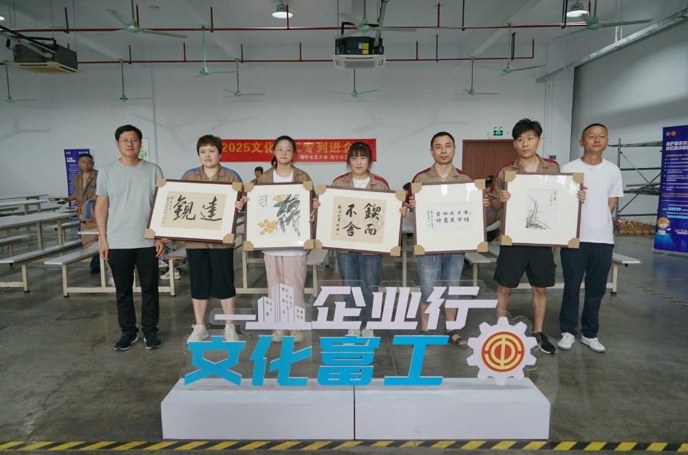 本次活動(dòng)在不影響大家工作的前提下進(jìn)行,隨著午餐時(shí)間的到來,公司員工們陸續(xù)步入餐廳就餐,活動(dòng)正式開始。首先是文娛演出,節(jié)目有笛子、二胡、薩克斯、唱歌、街舞等,還有工會(huì)法、國(guó)家安全知識(shí)問答。期間還給5個(gè)優(yōu)秀員工贈(zèng)送了由海寧職工書畫院書畫家們創(chuàng)作的書畫作品,贏得大家的喜愛和追捧。