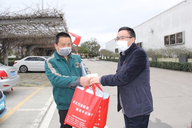 當(dāng)前,抗擊新冠肺炎疫情正處于關(guān)鍵時(shí)刻,各家企業(yè)陸續(xù)迎來復(fù)工復(fù)產(chǎn)。2月15日,斜橋鎮(zhèn)黨委書記洪國(guó)清和黨委委員、副鎮(zhèn)長(zhǎng)潘曉國(guó)專程到我集團(tuán)股份二區(qū)工廠慰問調(diào)研,了解企業(yè)的開復(fù)工情況和碰到的一些問題,送上了1000只醫(yī)用口罩和2把測(cè)溫儀。