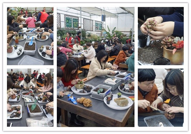 活動在多肉DIY中拉開序幕。多肉是植物界的小清新,天然呆萌,自帶治愈效果,而且還可以凈化空氣,作為裝飾點綴之用。在栽培老師的帶領下,姐妹們有序圍坐在一起認真地將桌上的一盆盆小植株移入可愛的小花盆,并無限發(fā)揮自己的想象,怎么漂亮怎么搭。有的還不時詢問身邊的同事和老師,植株的名稱和搭配方式??粗约河H手打造的精致美景,姐妹們不約而同拿出手機拍了下來,有的還第一時間分享給了朋友。