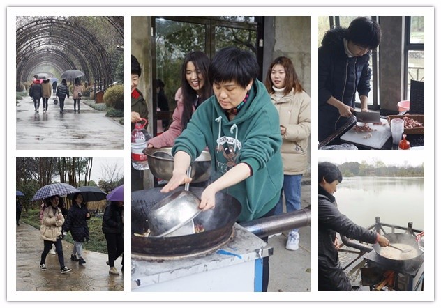 種完了多肉,大伙兒一起來到風景優(yōu)美的鳳凰湖邊,開始了歡樂野炊。盡管天氣陰冷,野炊爐具均在室外,但是姐妹們還是一下子投入其中,淘米、洗菜、生火、做飯,忙得不亦樂乎。野炊中大家密切配合,輪番上場,不一會兒功夫,4鍋香噴噴的“野飯”和一鍋暖暖的雞湯水餃便端上了餐桌?!昂贸?,好吃……”“咸淡正好,這是誰燒的呀?這么厲害!”“香……”離開工作舞臺,個個都是居家好手,大家相互說笑著,品味著這份不同尋常的別樣午餐。