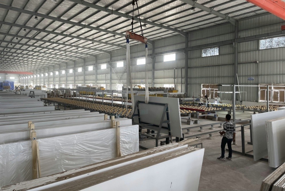 柬埔寨高金石有限公司是由福建磐珉新材有限公司于2019年11月在特區(qū)設(shè)立,主要生產(chǎn)可應(yīng)用于住宅和商業(yè)室內(nèi)裝飾的環(huán)保石英石板材產(chǎn)品,包括廚房臺面、浴室臺面、辦公桌、墻板等,項目分二期建設(shè),目前一期投資1000萬美元,建筑面積24000平方米,員工230人,年出口1800多萬美元;二期計劃擴建用地28000平方米。
