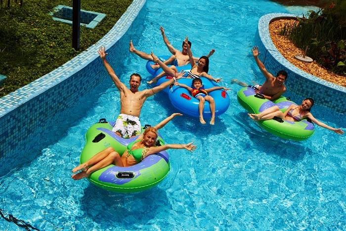 · 漂流河,長度約700米,你只需要躺在特別設(shè)計的浮圈上沿河漂流放松自己就行,非常悠閑的一項體驗。