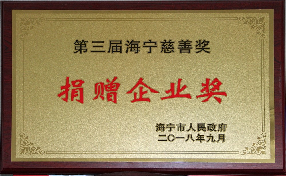 昨天晚上,由海寧市人民政府主辦的第三屆“海寧慈善獎”頒獎晚會在海寧文化館廣場盛大舉行,19個“捐贈企業(yè)獎”、10名“慈善之星”、10個“慈善組織獎”、10個“慈善項目獎”受到了表彰。本集團(tuán)獲得了“捐贈企業(yè)獎”榮譽(yù)稱號。評選委員會給予“捐贈企業(yè)獎”的頒獎詞是:“如果說企業(yè)家身上要流淌著道德的血液,那么,企業(yè)就是社會責(zé)任的承擔(dān)者和社會良心的守望者。在海寧,有一大批企業(yè),如萬川歸海,用創(chuàng)新涌起經(jīng)濟(jì)的浪潮,用慈善重寫財富的價值。”