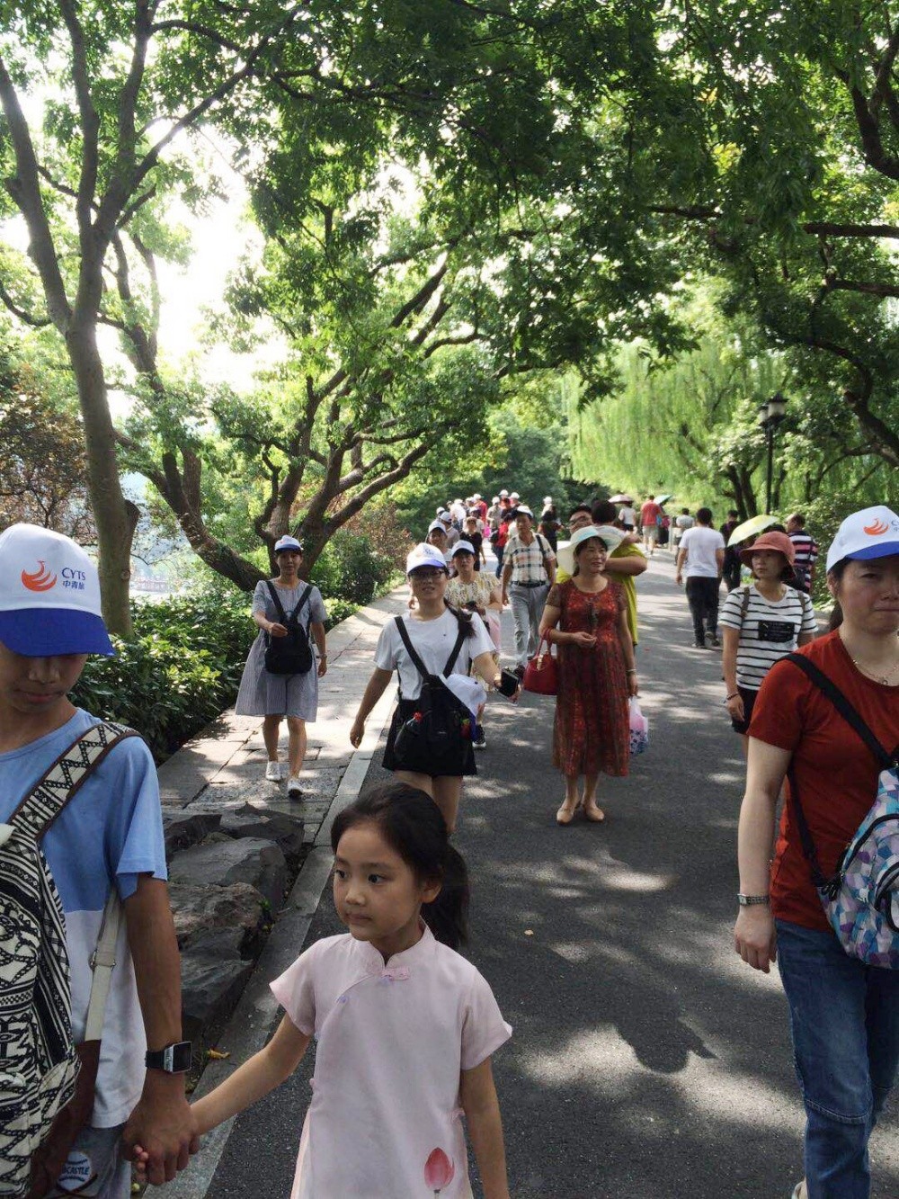 一下車,大家漫步來到了西湖邊,走在蘇堤上,紛紛感慨:西湖不愧是人間天堂啊!整個(gè)一座湖就像一面大鏡子,倒映著湖邊的美景,照出了大家歡樂的心聲。湖堤兩岸長滿了柳樹,柳樹依舊像春天那樣充滿著蓬勃的生命力,枝條長得已經(jīng)垂到了湖面,宛如一個(gè)美麗的少女正在清洗她那長長的黑發(fā),微風(fēng)乍起,柳枝擺動(dòng),仿佛是風(fēng)在彈奏悠揚(yáng)的豎琴,也仿佛在歡迎我們恒森一家人的到來。在這如此美的景色下,有的員工拿出手機(jī)拍照留念,有的員工結(jié)伴倚在湖邊的長凳上,相互聊天拉家常。