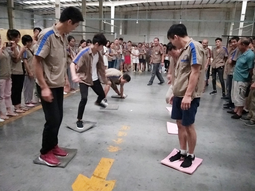 隨著一聲“比賽開始”的口令,大家熱情高漲,隊員們齊心協(xié)力,奮力拼搏,有些隊剛開始有點緊張,所走路線成彎曲狀,后來,在大家從旁提醒,順利到達終點。有些隊吸取經(jīng)驗,通過簡單的交流和溝通戰(zhàn)略技巧,比較順利。相比而言,后面的組明顯比前面的組速度快。在整個比賽過程中,里料車間團隊協(xié)作的能力和靈活的戰(zhàn)術配合比較好,本著“友誼第一、比賽第二”的精神,經(jīng)過激烈角逐,里料車間以2分25秒完成了60米“搭橋過河”獲比賽第一名,包裝車間獲得第二名,技術部獲得第三名。