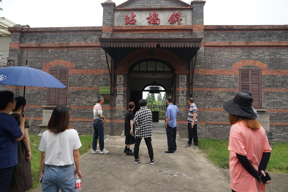 首先,全體黨員來到斜橋火車站參觀。斜橋火車站建于清宣統(tǒng)元年(1909年)8月,雖然從2004年開始,斜橋站停辦了客運業(yè)務,但它是現(xiàn)今滬杭鐵路上保存最好的百年老站。而讓它更具有歷史意義的,是東西兩邊保存較為完整的碉堡炮樓,這里陳列著當年日軍侵華的罪證。