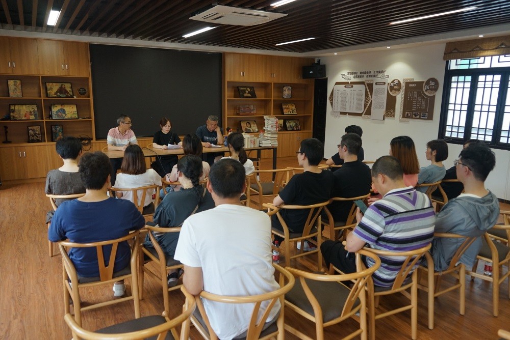 參觀完火車站和名人館,黨員們來到智慧書屋,體驗智慧書屋的便利與溫馨。該書屋以超高頻技術為基礎,將自助終端設備與網絡、小程序完美融合,以24小時無人值守自助體驗為特色。隨后黨員們在小鎮(zhèn)會客廳坐下來,圍繞米谷、褚學潛、殷白等名人事跡展開學習,在學習中進一步升華認知。