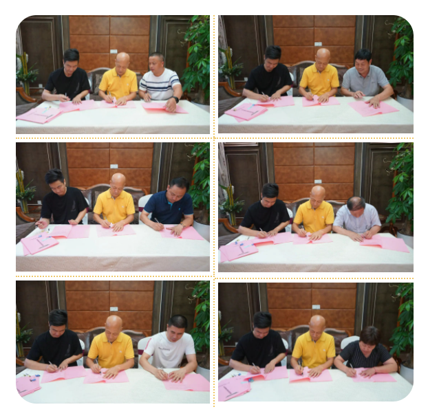 簽約儀式現(xiàn)場氣氛熱烈,朱總與漢林、卡雷諾等子公司的總經(jīng)理及職能部門代表三方逐一在股份制經(jīng)濟責(zé)任考核協(xié)議書上簽了字,朱總不忘給各子公司加油鼓勁,并恭祝他們再創(chuàng)佳績。