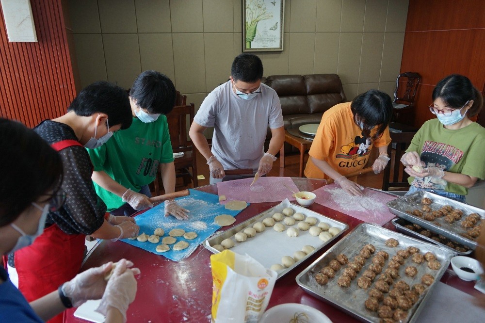 在群團(tuán)組織的帶領(lǐng)下,大伙兒一起親身體驗(yàn)做月餅的樂趣,現(xiàn)場熱鬧非凡,氣氛活躍喜慶。公司不乏做月餅高手,在她們點(diǎn)撥下,大家信手拈來,人人化身月餅師傅,揉粉、搟皮、做餡、包裹、上色、烘焙……一個個精美的月餅在手中呈現(xiàn),空氣中洋溢著滿滿的成就感。