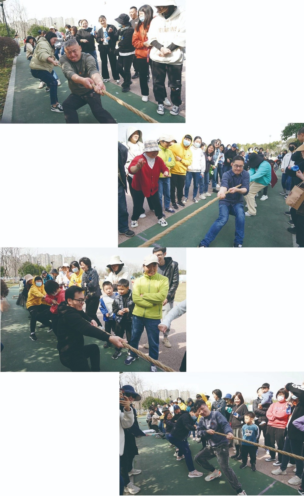 然后進(jìn)行的是拔河比賽,按分組再抽簽對(duì)陣,兩兩競(jìng)爭(zhēng),采用3局2勝淘汰制晉級(jí)方式。比賽中,各組齊心協(xié)作、勇爭(zhēng)第一。哨聲響起時(shí),只見參賽的隊(duì)員緊握長(zhǎng)繩,卯足了勁兒拼命往后拉,未參賽的員工自發(fā)組成啦啦隊(duì)為比賽隊(duì)員吶喊助威,哨子聲、吶喊聲、加油聲、歡笑聲此起彼伏,一輪又一輪,高潮迭起,為鵑湖廣場(chǎng)的熱鬧圖景又增添了一抹亮色。八組隊(duì)伍努力拼搏、堅(jiān)忍不拔,經(jīng)過激烈角逐,最終決出了名次,獲得了一定的物質(zhì)獎(jiǎng)勵(lì)。