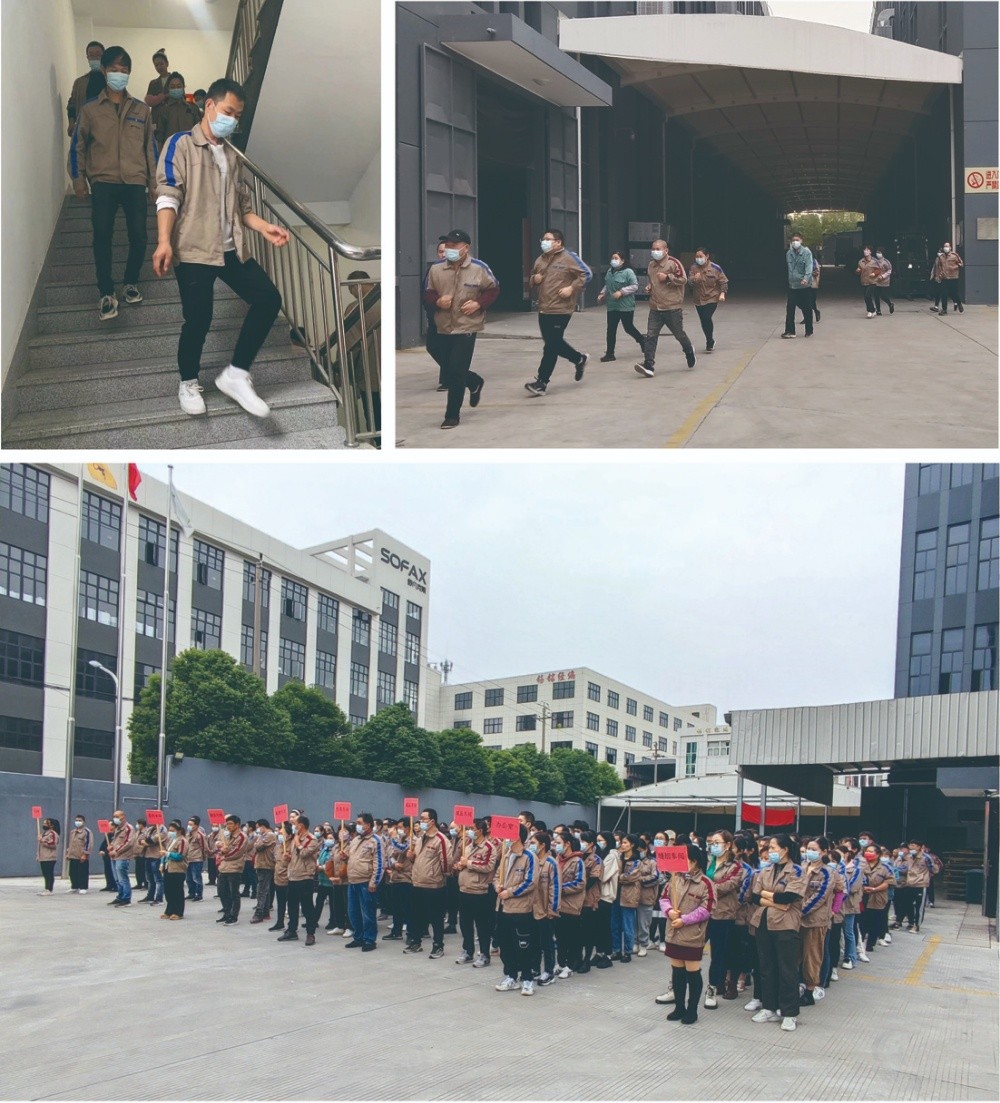 一聲令下,全體員工迅速從防火通道口撤離,應急疏散演練正式開始,各車間班組長在各車間門口進行引導員工迅速離開車間,員工用濕毛巾之類物品捂住口鼻,彎腰低姿快速有序地沿防火安全疏散通道向外跑,各部門負責人將員工引導至空曠安全地帶,各班組長在確保車間內人員全部離開后,迅速沿員工疏散方向撤離,隨即各車間主任清點人數,并層層向上匯報。