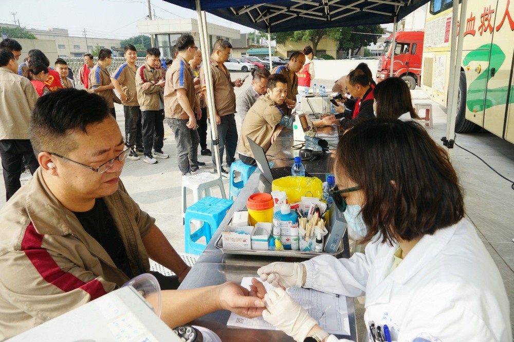 當(dāng)天上午,整個(gè)廠區(qū)洋溢著愛的暖流。只見大家在采血車前有序填寫獻(xiàn)血登記表、測(cè)量血壓、征詢體檢、初篩采樣。隨后合格者上車獻(xiàn)血,奉獻(xiàn)愛心。