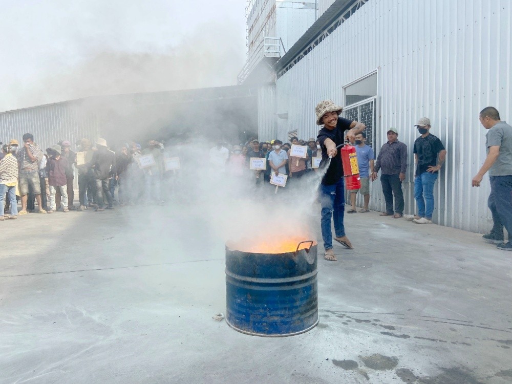 恒森公司柬埔寨廠區(qū)現(xiàn)有員工450人,這次培訓(xùn)分上、下午兩場進(jìn)行,著重宣傳和強(qiáng)調(diào)消防安全和道路交通安全的重要性和必要性,并就消防器材使用進(jìn)行了現(xiàn)場講解與演練。