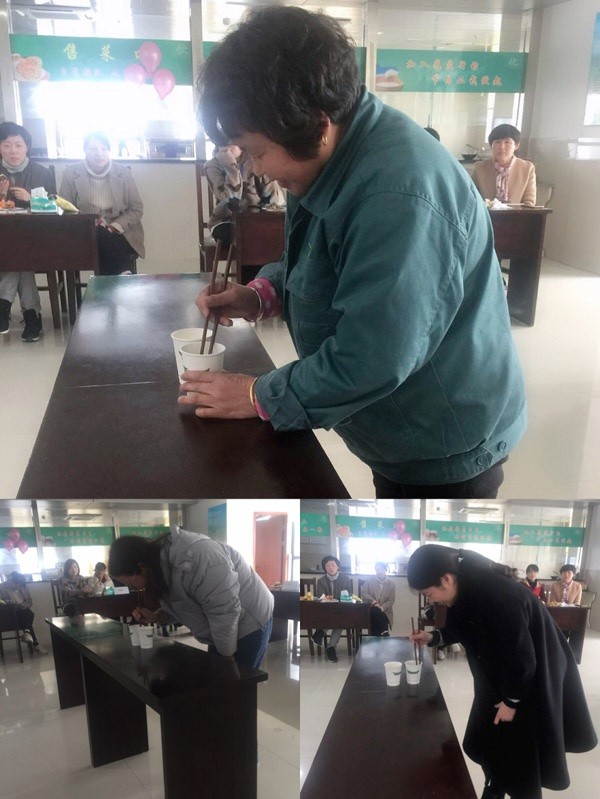 下午1點,報名參加活動的女職工們?nèi)缂s來到23樓,工作人員早已為大家排好座位,準備好了獎品和水果瓜子,大家根據(jù)抽簽序號到相應位置落坐?;顒臃譃?/span>8組,每組5名成員,每名成員參加一項活動,最終根據(jù)得分排名。