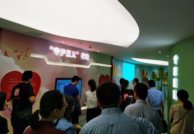 會后,連副市長和李檢察長為“海寧市未成年人法治教育基地”揭牌,市級機關(guān)相關(guān)部門、相關(guān)局及有關(guān)單位近80人參觀了法治教育基地的宣傳展廳和“彩虹橋”工作室。