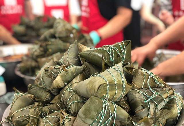 上午8點(diǎn),包粽子能手們?cè)缭鐏?lái)到了23樓,洗粽葉,泡糯米、腌配料,每一項(xiàng)工作都在有條不紊地進(jìn)行中。